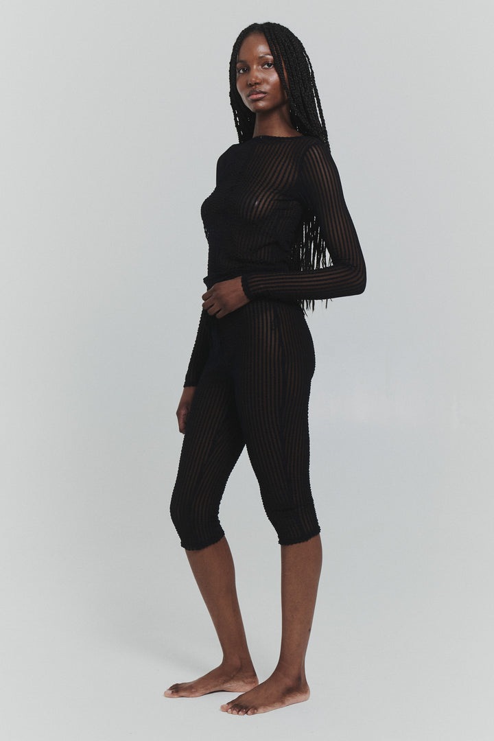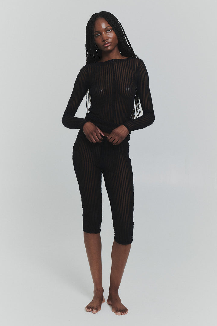 Long sleeve cardigan made of a lightweight, sheer mesh fabric. A fitted piece, perfect as a layering piece or wearing solo.