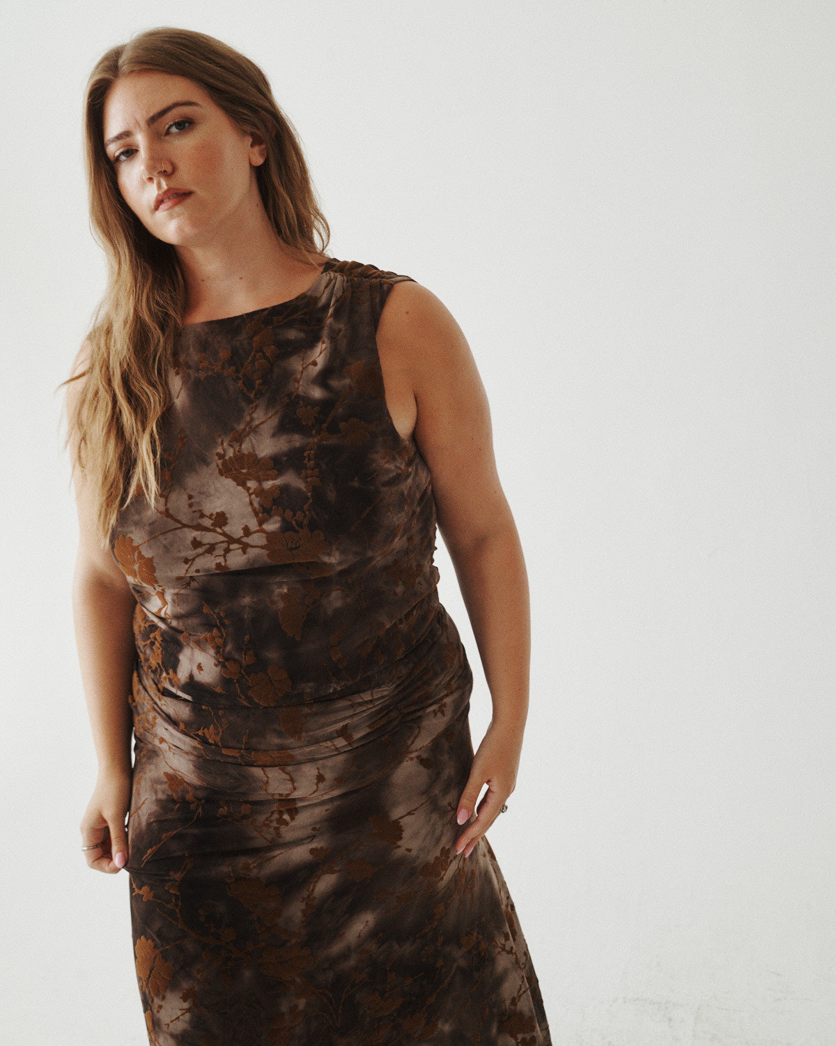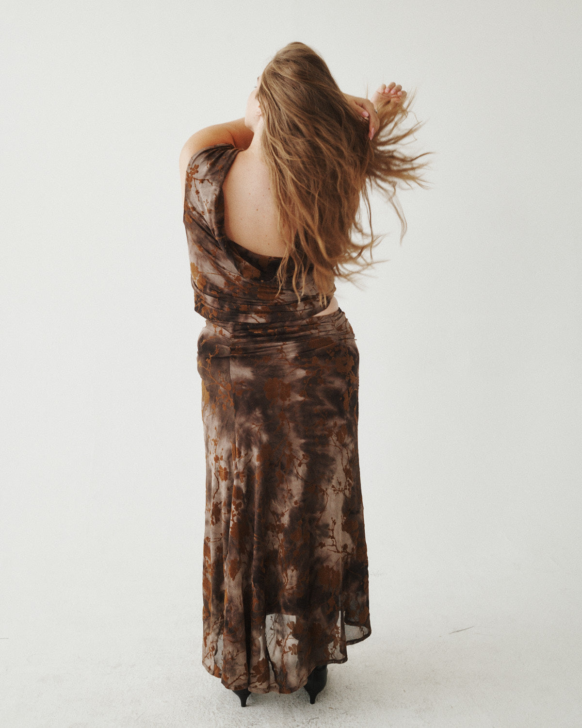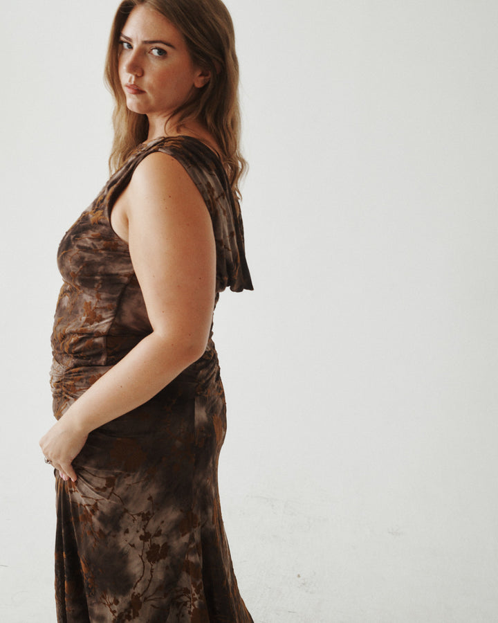 This shirt features a draped cowl at the back, which is perfectly engineered for an exposed-back look without sacrificing support. Ruched shoulders add texture, while the lightweight fabric floats with every move, embodying downtown cool with editorial polish.